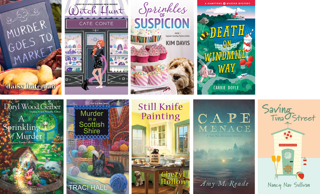 Here is a list of over 45 new titles representing major genres such as cozy mysteries, traditional mysteries, suspense and others releasing this month, with nine debut series from Daisy Bateman, Cate Conte, Kim Davis, Carrie Doyle, Daryl Wood Gerber, Traci Hall, Cheryl Hollon, Amy M. Reade, and Nancy Nau Sullivan.